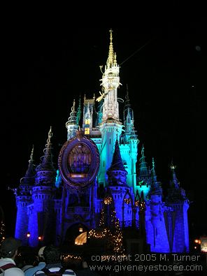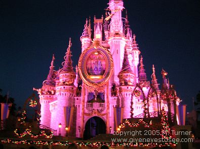 ![]() Cinderella's Castle lit up and decorated |